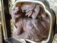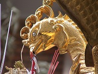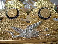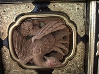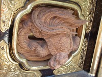 | 鳳凰の目がギラリ | 駒札・屋根紋 | 露盤 四神 玄武 |